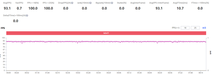 经过实测,腾讯ROG游戏手机5能够以93.1帧的平均帧率运行《王者荣耀》,游戏过程流畅,帧率稳定。