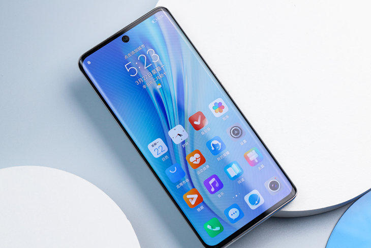 荣耀V40轻奢版采用了成本更高但更轻薄的的柔性OLED超曲屏,并通过前后3D曲面的设计,让手机中框保持纤薄的同时降低了重量。此前,曲面屏往往只出现在高端以及旗舰级手机中,但这次V40轻奢版的出现降低了曲面屏的门槛,让更多消费者也能感受到曲面屏带来的视觉享受。荣耀V40轻奢版曲面屏为6.57英寸,整体比例比较修长,很适合追剧以及游戏。屏幕最高90Hz的刷新率带来顺滑的操作与观看体验,并且具备10亿色(8+2bit)色彩显示,相比传统的8bit色深,10bit色彩层次丰富且过渡自然,同时还达到了100% DCI-P3的广色域,在屏幕上观看图片与视频可显示好的还原出丰富的色彩。