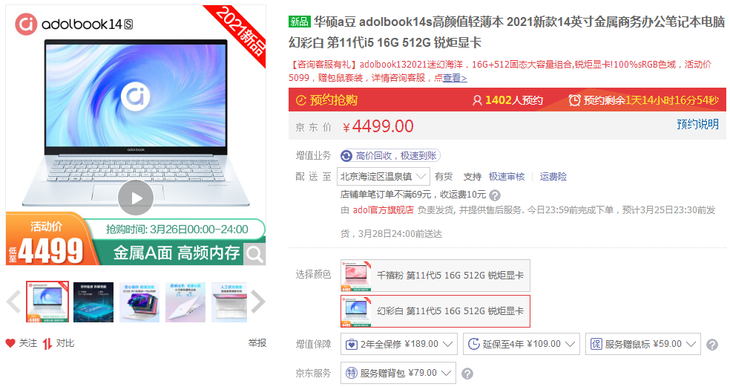 推荐adolbook14s这款超轻薄笔记本,它颜值出众,性能也不错,特别是在3月26日当天,这款轻薄本直降500,到手价仅4499元,相当实惠。
