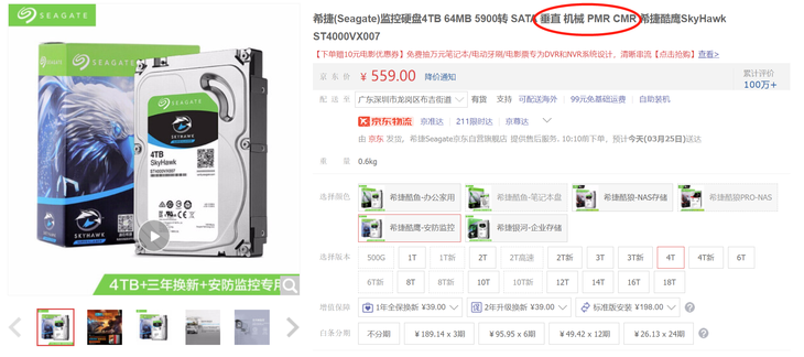 叠瓦盘为了避免改写数据时影响到相邻磁道,增加读写性能,所以需要大的缓存,因此缓存大小也能简单的判断垂直盘和叠瓦盘。垂直盘缓存多为32MB/64MB,叠瓦盘多为128MB/256MB,这个方法可以避开大多数的坑。