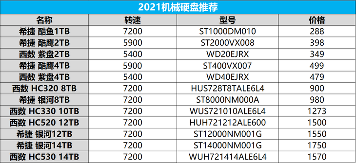 各容量靠谱硬盘推荐: