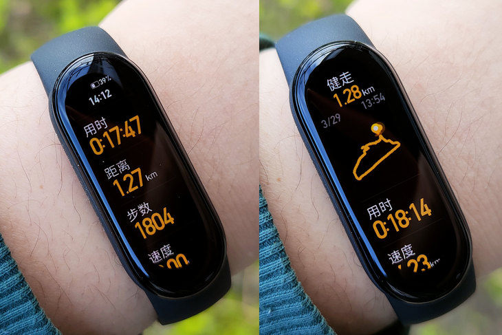 除了更大显示面积的全面屏外,小米手环6的屏幕规格也有大的提升,显示屏精细度达到326PPI视网膜级,具备约7.4万像素分辨率(152x486),而小米手环5则只有约3.7万分辨率(126x294)。所以从实际的使用感受来说,小米手环6观看效果更佳,尤其是在显示通知、信息等文字内容时更清晰,即便凑近看也不会有明显的颗粒与锯齿感。