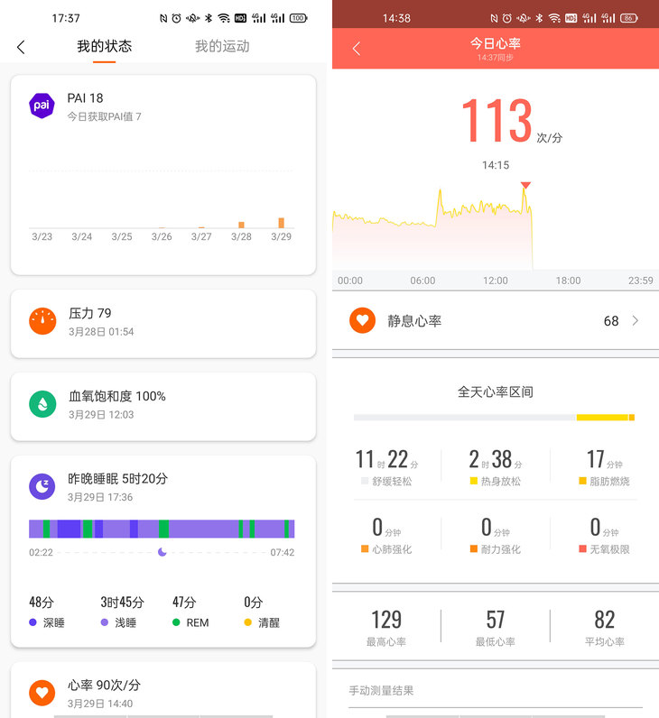 睡眠问题相信是不少都市人都面临的一大困扰,这次小米手环6除了可实时检查睡眠情况外,还支持呼吸睡眠质量监测,可根据睡眠期间心率变化以及血氧变化,判断睡眠时呼吸质量,提供健康报告;REM快速眼动期监测也可根据睡眠期间心率变异性、呼吸信息的变化规律计算,提供分析报告。并且值得一提的是,小米手环6在监测精准度也得到加强,搭载的高性能PPG生物传感器,对心率传感器有更好的优化,降低了不规则运动的干扰。
