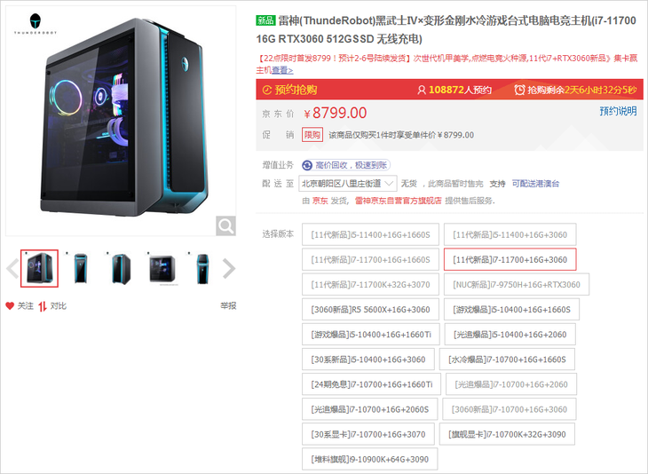 雷神黑武士四代开售:i7搭RTX3060不到9千元