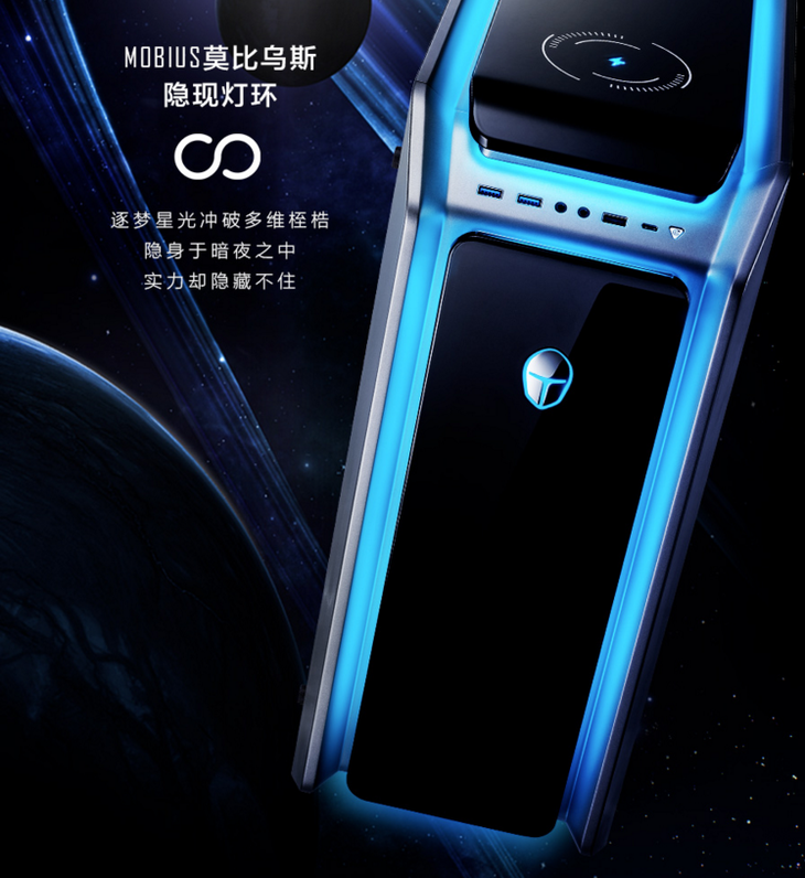 说完了性能,我们再来说说它的颜值。雷神黑武士四代水冷游戏主机在外观设计上融入了浓郁的机甲美学,首度在PC产品中加入非直射光源“莫比乌斯氛围灯”,打破空间与时间的界限,整机如同变形金刚的爆裂光甲亮彻黑夜。前面板采用了全新的模块化简易拆卸设计,开放出多种多样的定制化面板供用户选择,心仪的面板可根据自己的喜好随心转换。