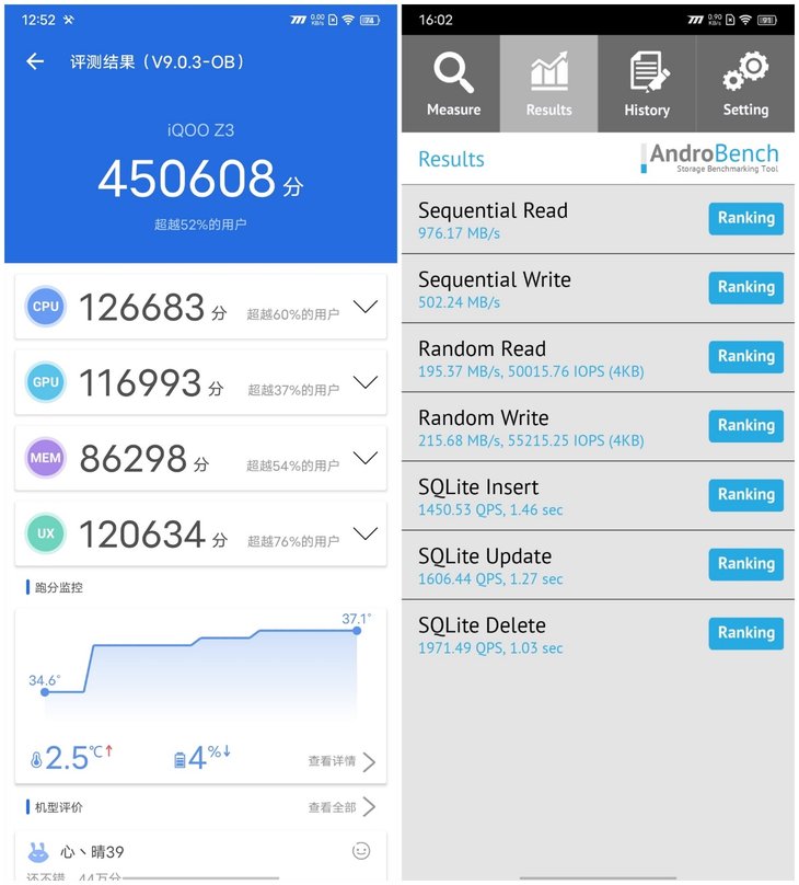 理论性能方面,安兔兔跑分可达45万+,读写速度方面比UFS 2.1有较为明显提升。在实际体验方面,我们选择了多款游戏进行实测。