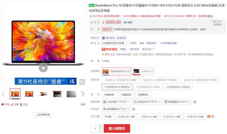RedmiBook Pro 15采用最新的intel 11代酷睿H35标压处理器、3.2K高刷全面屏、USB3.2和雷电4接口、WiFi6技术。机身结构上采用同价位产品罕见的6系航空级铝合金微米级CNC一体精雕工艺,让其内外结构比传统金属冲压的笔记本更坚固。