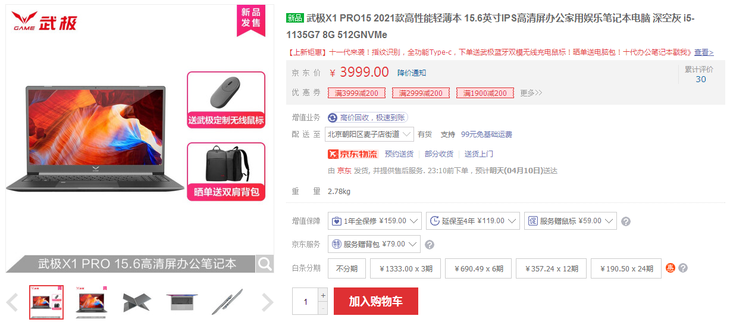 武极X1 PRO15 2021款是一款性能较强的15.6英寸轻薄笔记本电脑。它采用了成本较高的铝镁合金机身设计,整机净重仅1.18kg,携带性相当不错,并且搭配了11代酷睿i5-1135G7处理器以及全高清显示屏,能够满足很多家庭轻办公轻娱乐的需求。