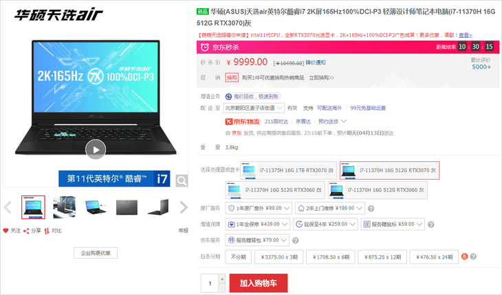 还在为买不到RTX30系列笔记本而发愁?不妨关注下华硕天选air,目前RTX3070显卡搭配i7-11370H处理器的机型直降500,到手价仅9999元,并且货源非常充足,现在下单最快明天就给你送到家!