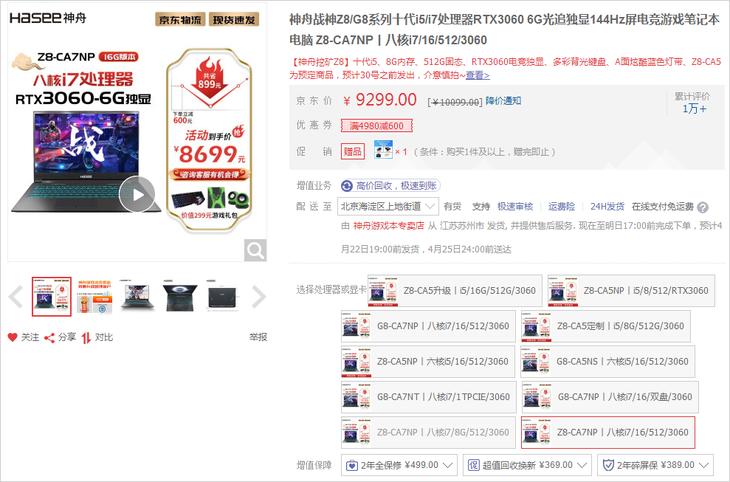 神舟战神Z8-CA7NP游戏本拥有酷睿i7-10870H八核心处理器搭配RTX3060显卡的硬核组合,游戏性能已非常诱人。