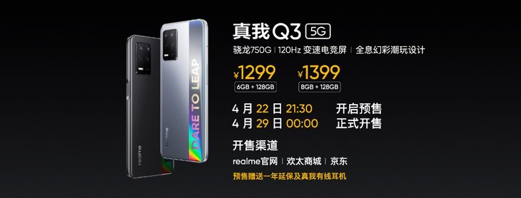 4月22日,realme真我Q3系列正式发布,包括多款机型,其中realme真我Q3售价1299元起。