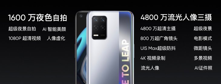 realme真我Q3搭载骁龙750G处理器,配备电竞级VC液冷散热。内置5000mAh大电池、配备30W 智慧闪充,支持2+1卡槽、后置为4800万像素主摄+800万像素超广角+200万像素微距三摄组合。