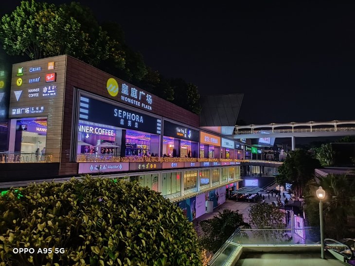 OPPO A95的超广角默认模式的成像清晰,画面拥有很强的表现力。在夜景模式下,暗部亮度的细节跟主摄一样都会变得更加丰富。