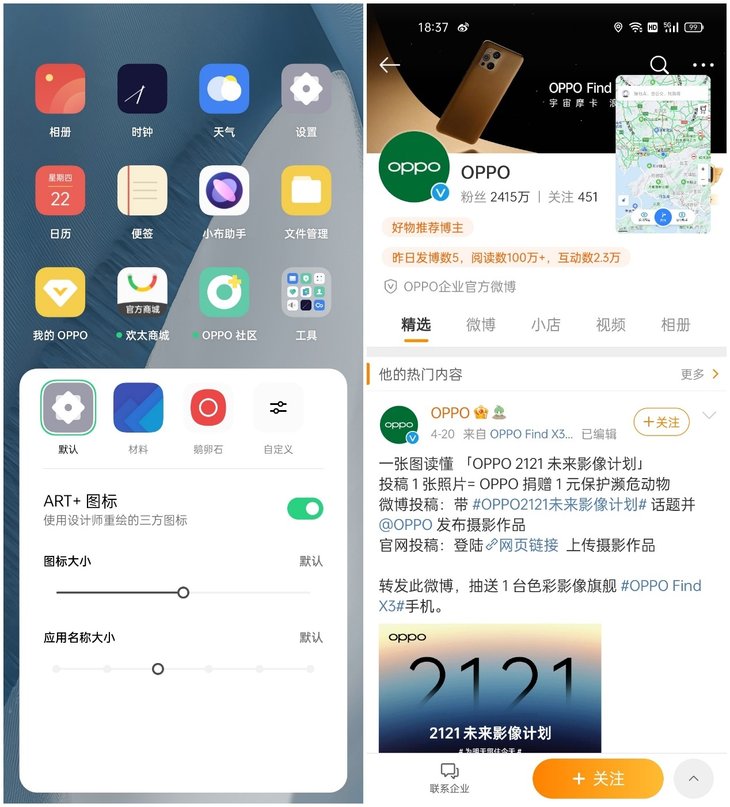 ColorOS 11.1还提供了许多实用的小功能,比如悬浮窗口、隐私保护、屏幕分享、Breeno 识屏等,这些都让这个系统的便捷性得到进一步提升。用户还可以定制属于自己的个性桌面,包括修改图标形状、大小、整体颜色主题等,保留了很高的个性化程度。