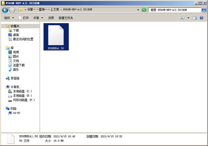 解压缩之后,便是BIOS文件。该BIOS文件的大小约为16MB。