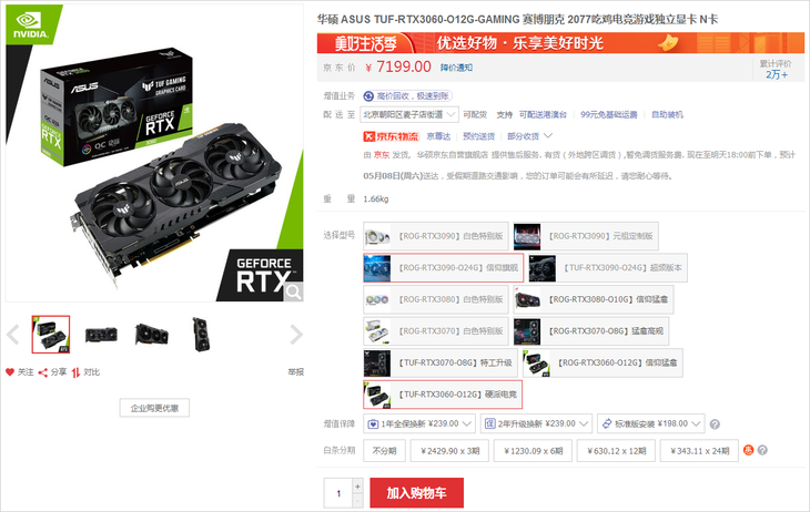 7199元 华硕RTX3060显卡现货销售