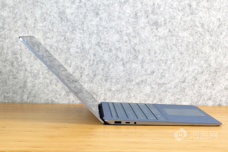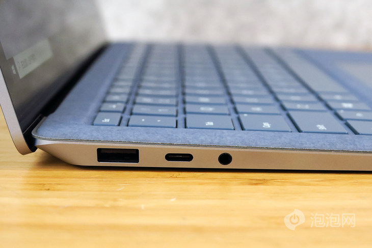 接口方面,Surface Laptop 4机身左侧的为USB-A接口、USB-C接口以及3.5mm耳机插孔。