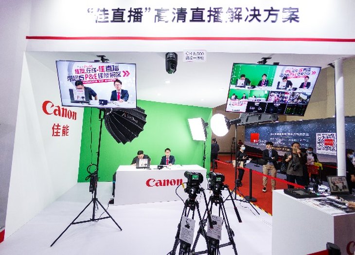 在本次P&E展会上,佳能特别设立了“佳直播”直播解决方案展区,欢迎消费者前来体验佳能的直播解决方案。