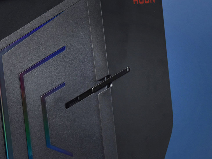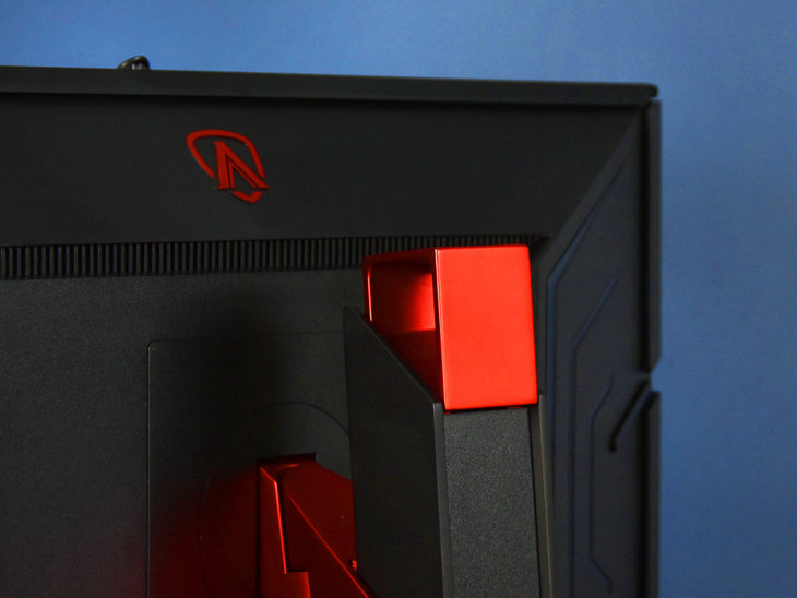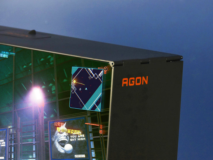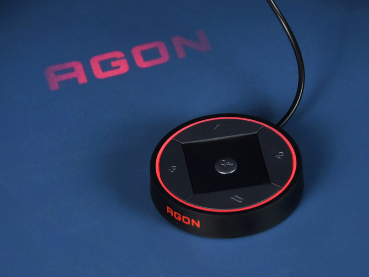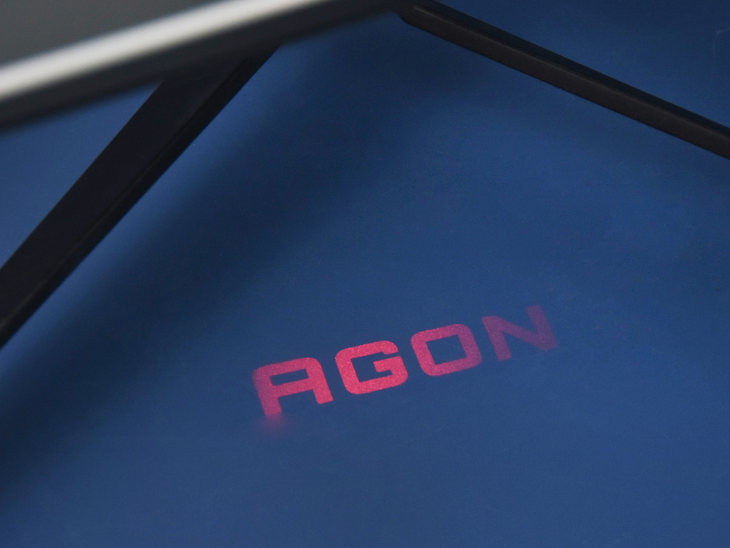这款显示器拥有一个投射式的信仰灯设计,能够将AGON爱攻的LOGO投射到屏幕下方的桌面上。