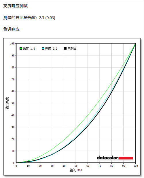 测试小结:这款显示器实际的伽马曲线和理想状况相比是比较接近的,表现较好。