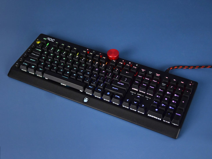 首先是AOC AGK700游戏键盘,其具有Cherry MX Blue机械开关。该机械键盘配有115个双注塑键帽。像GK500键盘一样,它提供n键翻转,100%防鬼影效果,但还具有其他一些高级功能,例如USB直通(2.0)和板顶部中心的音量旋钮。铝制车身经过精心设计,可以承受高水平比赛的能量。还有一个磁性且可拆卸的皮革皮革手腕托。玩家可以使用AOC G工具配置宏键,RGB照明并保存键配置文件。
