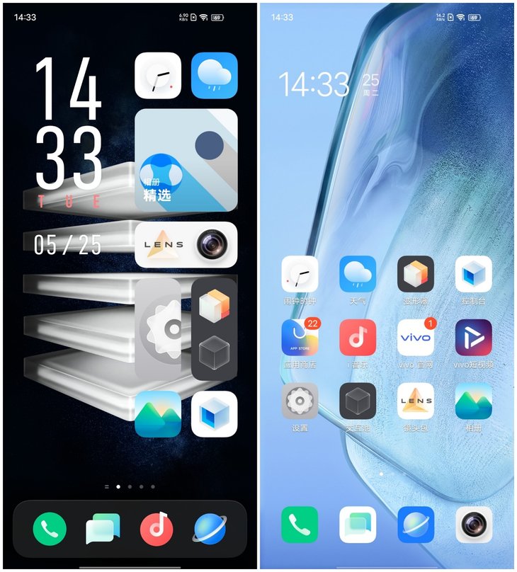 iQOO Neo5 活力版搭载OriginOS for iQOO,相比上一代系统,OriginOS for iQOO在界面上有大幅变化。OriginOS for iQOO准备了两套界面,创新的OriginOS界面和传统桌面,你可以快速在两者之间切换。