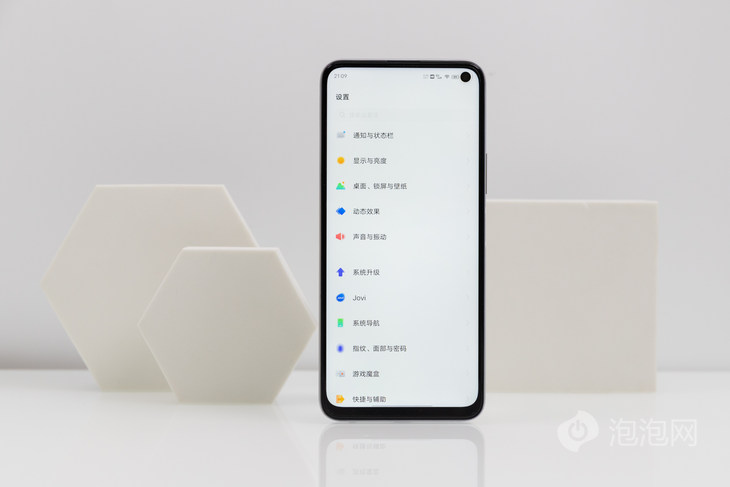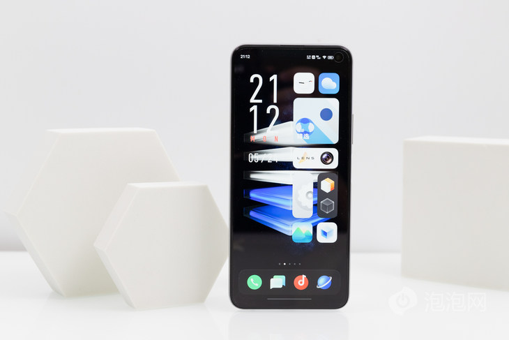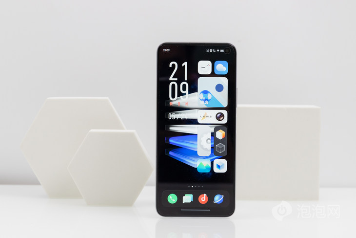 iQOO Neo5 活力版整体外观设计与Neo3非常接近,正面配备一块6.57英寸直屏,采用右上角单打孔设计,边框控制得不错,除了下巴略宽一点。屏幕视野开阔,屏占比达到90.4%。