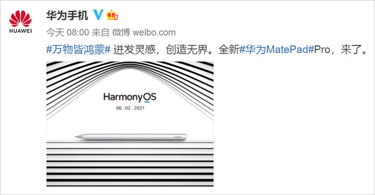 华为MatePad Pro平板将登场:标配鸿蒙系统