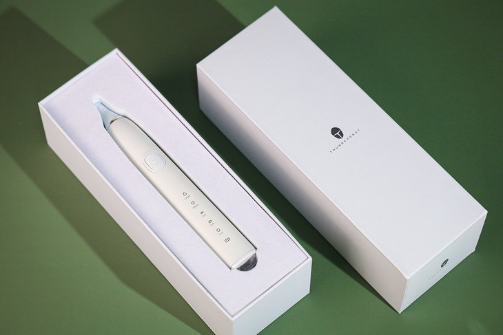 雷神N00是一款声波式的电动牙刷,相比于旋转式的电动牙刷来说,声波电动牙刷的刷头在与手柄垂直的方向通过声波马达高速左右摆动,产生流动洁力,进而清洁牙齿,不仅刷牙效果更好,而且使用起来更加舒适。雷神声波电动牙刷N00从外包装到产品本身白色的外观非常简洁大气。并且能够实现立式放置,日常使用中会很方便。同时,雷神声波电动牙刷的手柄采用符合人体工学设计,握感也非常舒服。