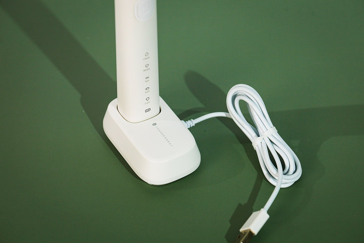 雷神声波电动牙刷采用无线充电方式,标配无线充电底座,充电时只需要将牙刷轻轻放在上面即可,基本上在实际使用时充电4小时可以正常使用30天时间,无需多次充电。同时,雷神声波电动牙刷支持IPX7级防水,可以放置在洗漱台旁进行充电。不过还是提醒大家,平时使用完电动牙刷之后,尽量要将牙刷置于干燥的地方,避免牙刷刷毛因长时间潮湿而滋生细菌。 另外,这款牙刷还具有放电保护功能,可以防止存放时意外开机,充电后立即解除保护。