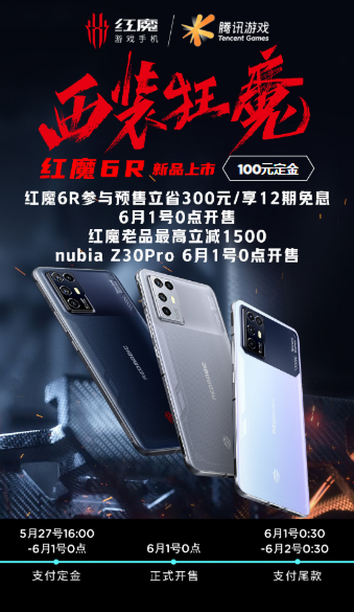 红魔6R将会在0点开启首销,还有618开门红福利,红魔游戏手机6R首销立减300元仅2699元起,还可12期免息!感兴趣的玩家朋友赶紧关注努比亚官网、努比亚京东自营旗舰店、努比亚官方天猫旗舰店等官方线上渠道进行预约。