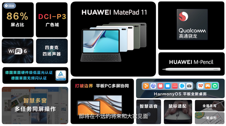 而华为 MatePad Pro 10.8 英寸与 华为MatePad 11 英寸是则采用了骁龙870 SOC也搭载了全新的鸿蒙操作系统。