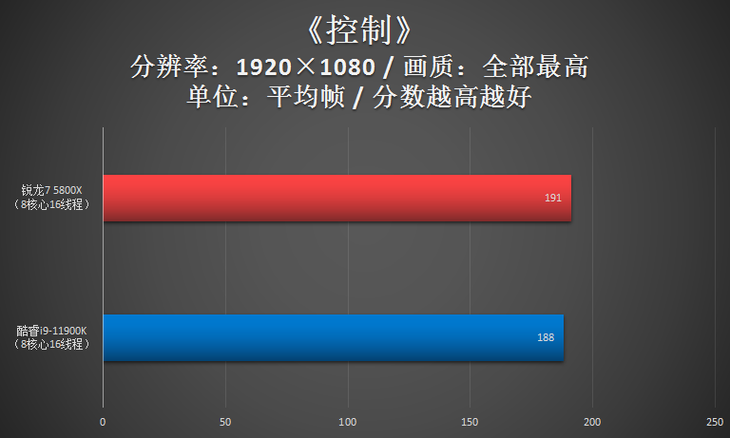小结:CPU游戏性能方面,在主流电竞游戏当中,锐龙7 5800X有着非常明显的优势。而在单机游戏当中,两款处理器互有胜负,可以看作是处于同一水平。