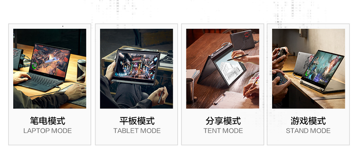 ROG 幻13笔记本可实现360度随心翻转,除了可以在常规笔记本模式下使用外,翻转折叠起来可以当做平板使用,也支持分享模式、游戏模式等不同形态,使用形态更自由。