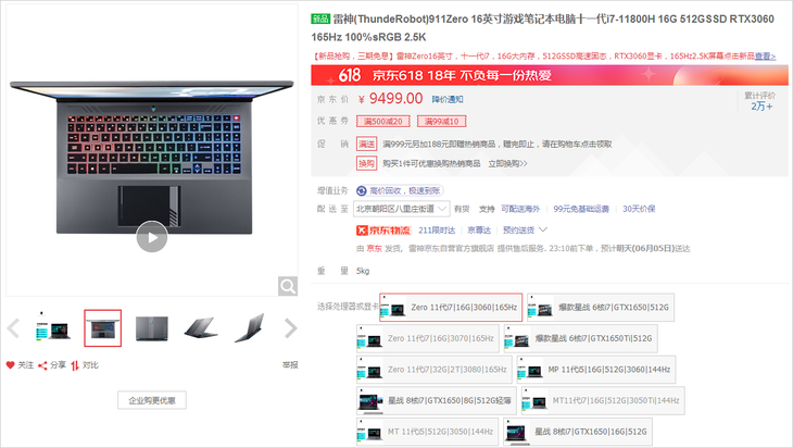 选购万元内大屏游戏本 618期间力推雷神ZERO