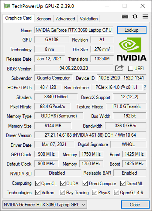 NVIDIA GeForce RTX 3060笔记本电脑GPU拥有3840个CUDA核心,比同时发布的GeForce RTX 3060台式机显卡的3584个CUDA核心竟然还要多。NVIDIA独有的DLSS 2.0与Reflex低延迟技术,更是能够提高游戏流畅度,并且生成精美、清晰的动态画面。