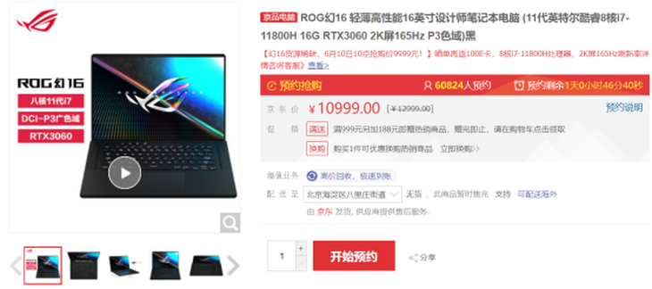目前ROG 幻16正在预约中,将会在6月10日10点抢购,价格9999元,非常值得入手。