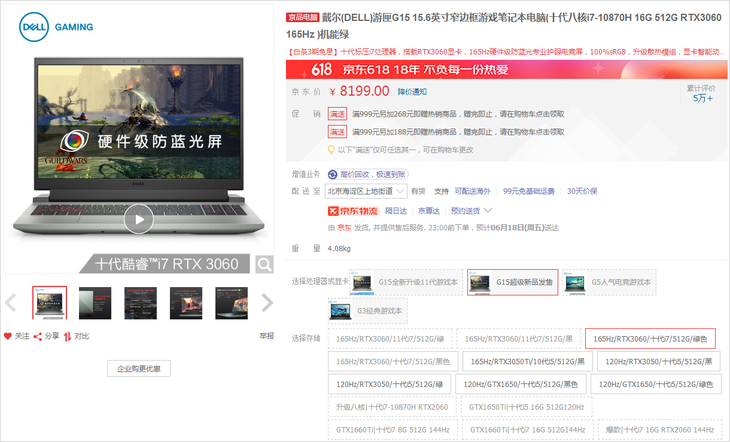 英特尔i7游戏本闪耀618 戴尔游匣G15不容错过