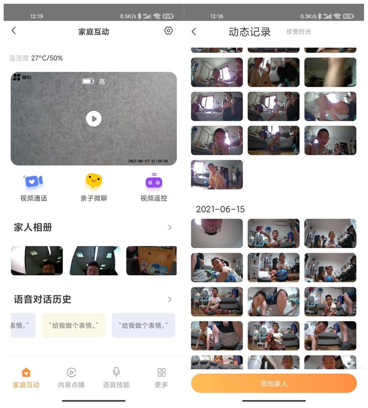 在孩子与萤石RK2 Pro玩耍的过程中,萤石RK2 Pro也会抓拍一些孩子的照片,通过手机APP就可以查看到机器人拍摄的内容,可以记录孩子玩耍与成长的照片。