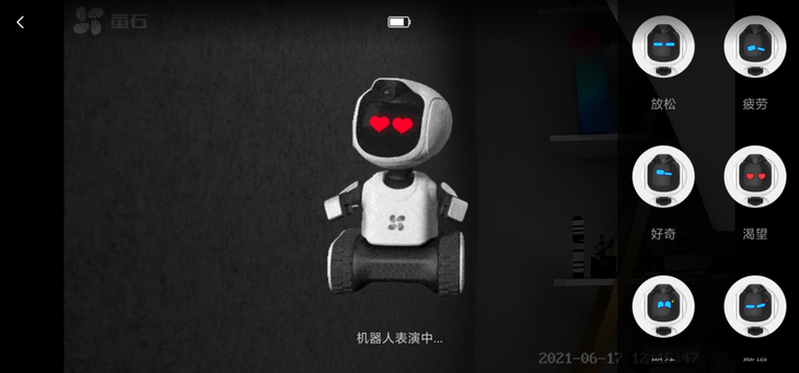 在萤石RK2 Pro时,还可以让机器人做出一些动作和表情,即使不在还在身边,也可以通过萤石RK2 Pro来与孩子互动。