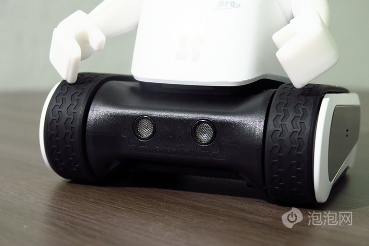 在机器人背部的是开机键与扬声器,底部还有一个重置按键。