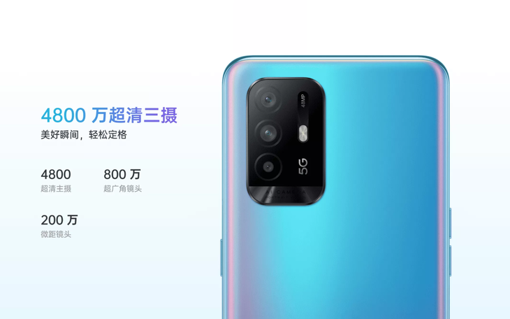 OPPO A95后置为4800万像素主摄+800万像素广角+200万像素微距三摄组合,前置为1600万像素镜头。系统相机自带霓虹人像、流光人像、人像留色、AI智慧美颜等功能,拍照玩法很多。