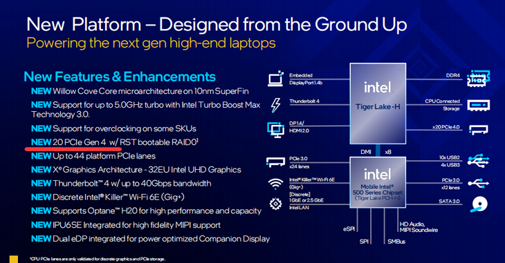 英特尔H45具备20条PCIe4.0通道,可让PCIe4.0设备火力全开