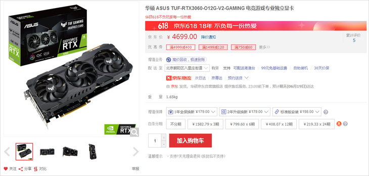 今天618,华硕锁算力版RTX3060显卡用完优惠券之后,4千5多元即可拥有。这价格笔者感觉还可以了。