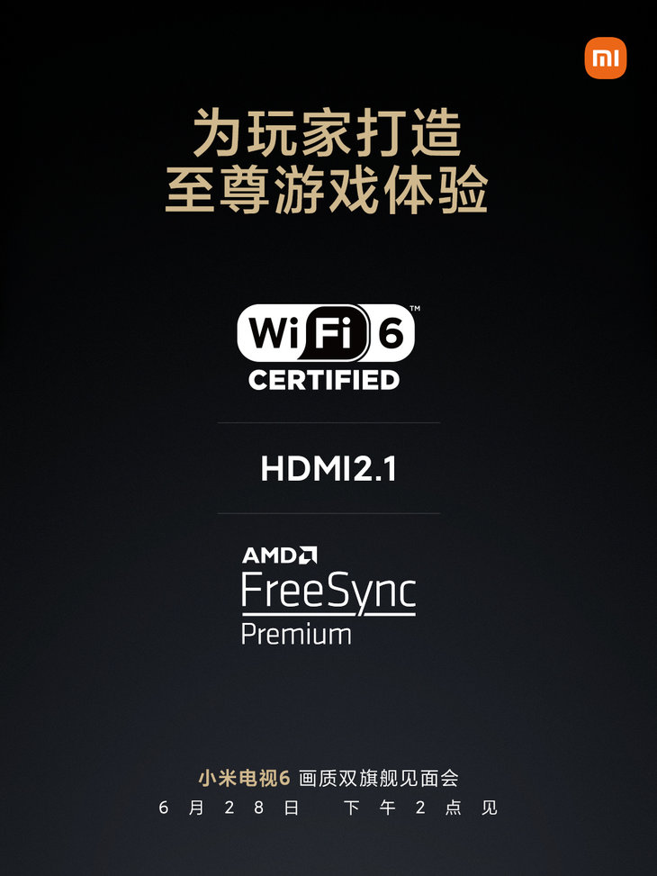 小米电视6 至尊版获得Freesync Premium游戏显示认证,拥有超低游戏延时,可减少画面卡顿撕裂等现象,让游戏玩家能够得到更好的游戏体验。这款电视还支持WiFi 6,标配两个HDMI2.1接口,满足更高规格的传输需求。小米电视6 至尊版将在6月28日正式发布。