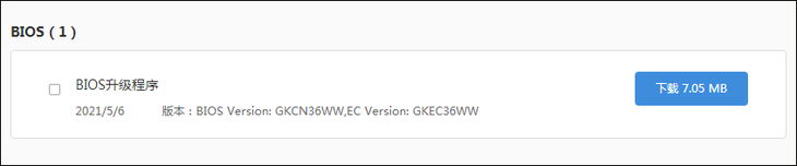 联想拯救者Y9000P 2021款目前最新的BIOS是6月7号上线的。