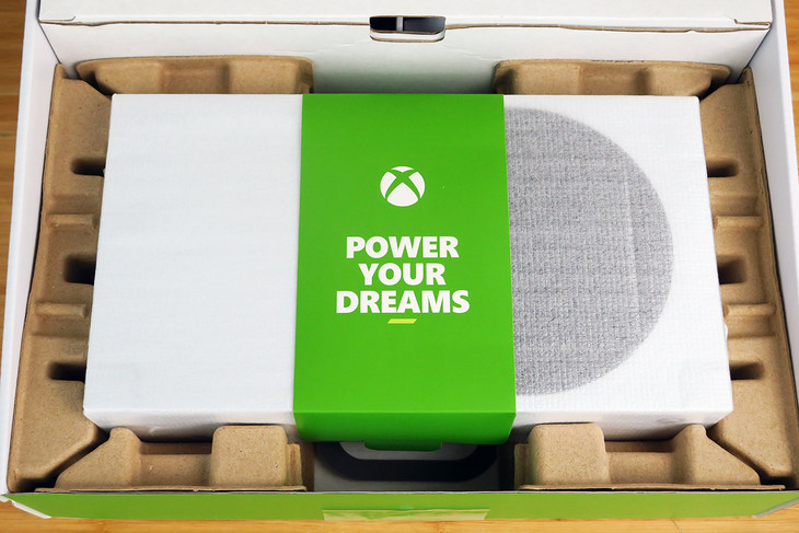 打开包装之后可以看到Xbox Series S的主机,保护的非常好。