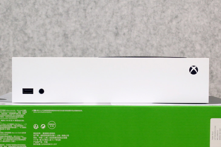 在Xbox Series S机身顶部左上角也印有XBOX的LOGO,非常的精致。