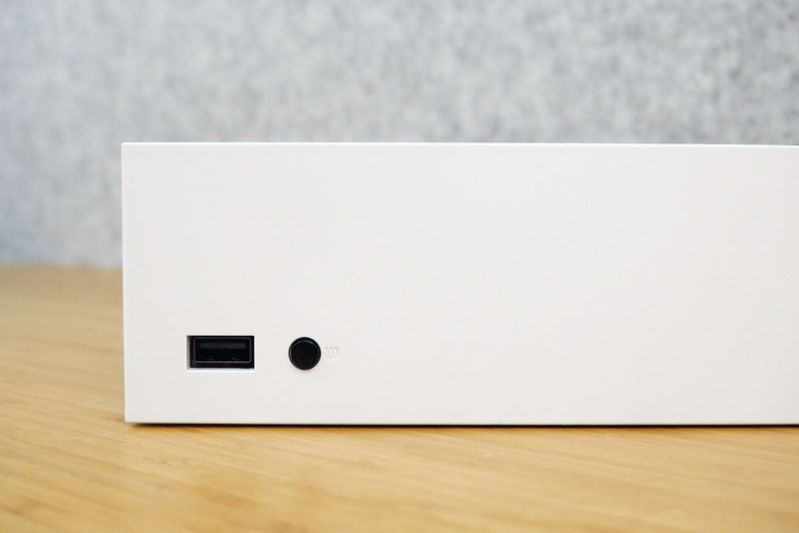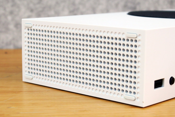Xbox Series S的机身设计非常的简约,纯白的矩形机身配合黑色圆形散热孔,颜值还是非常高的。