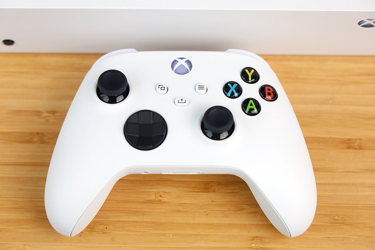 与Xbox Series S搭配的是一款白色的手柄,Xbox Series S的手柄手感是非常出色的。
